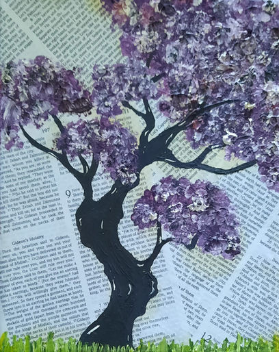 I repurpose old bibles, magazines, books and comics. I put the pages of the books on canvases, then do my artwork on them. I also do some photography which is something new to me.